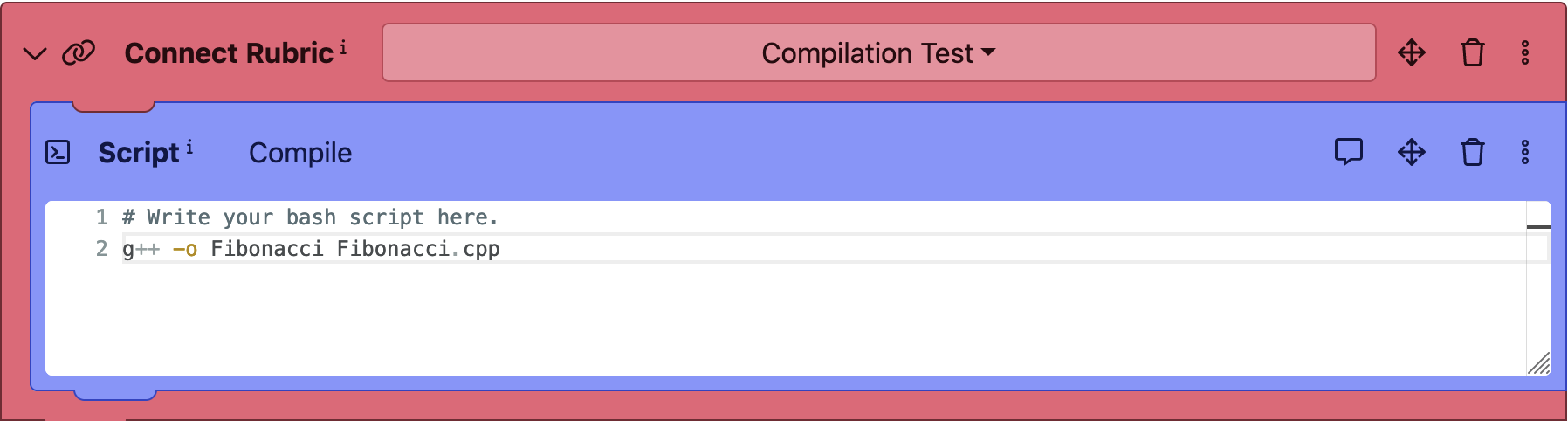 As with any compiled language like C++, each student's program must be compiled before we can run any other tests on it. We will also grade this test using the "Compile test" rubric category :&#x20;