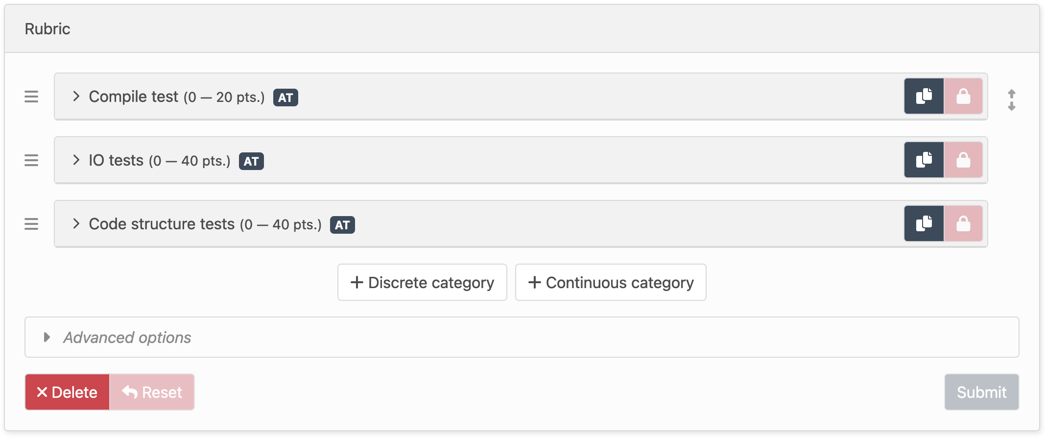 CodeGrade offers two types of rubric category: